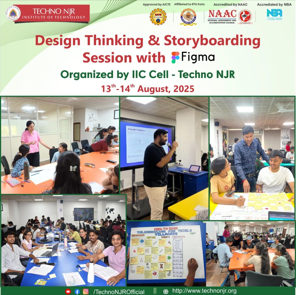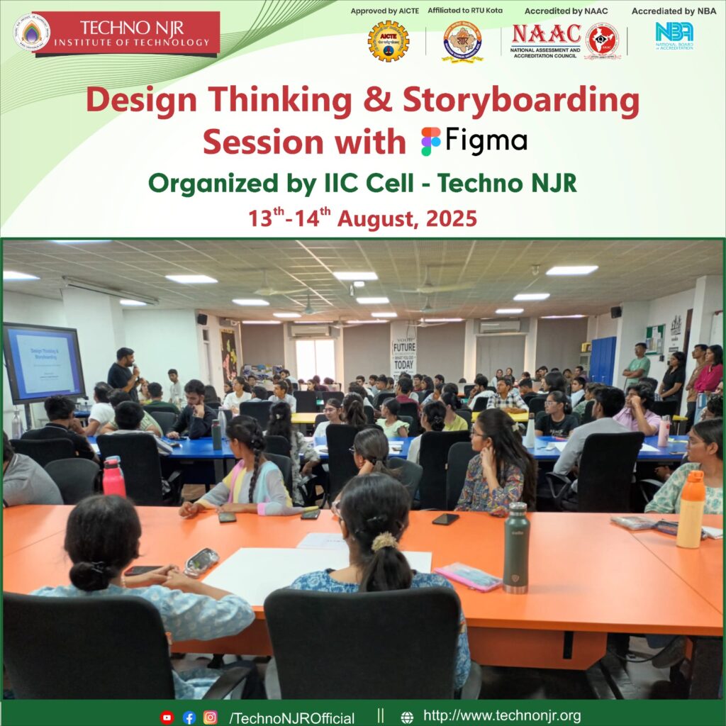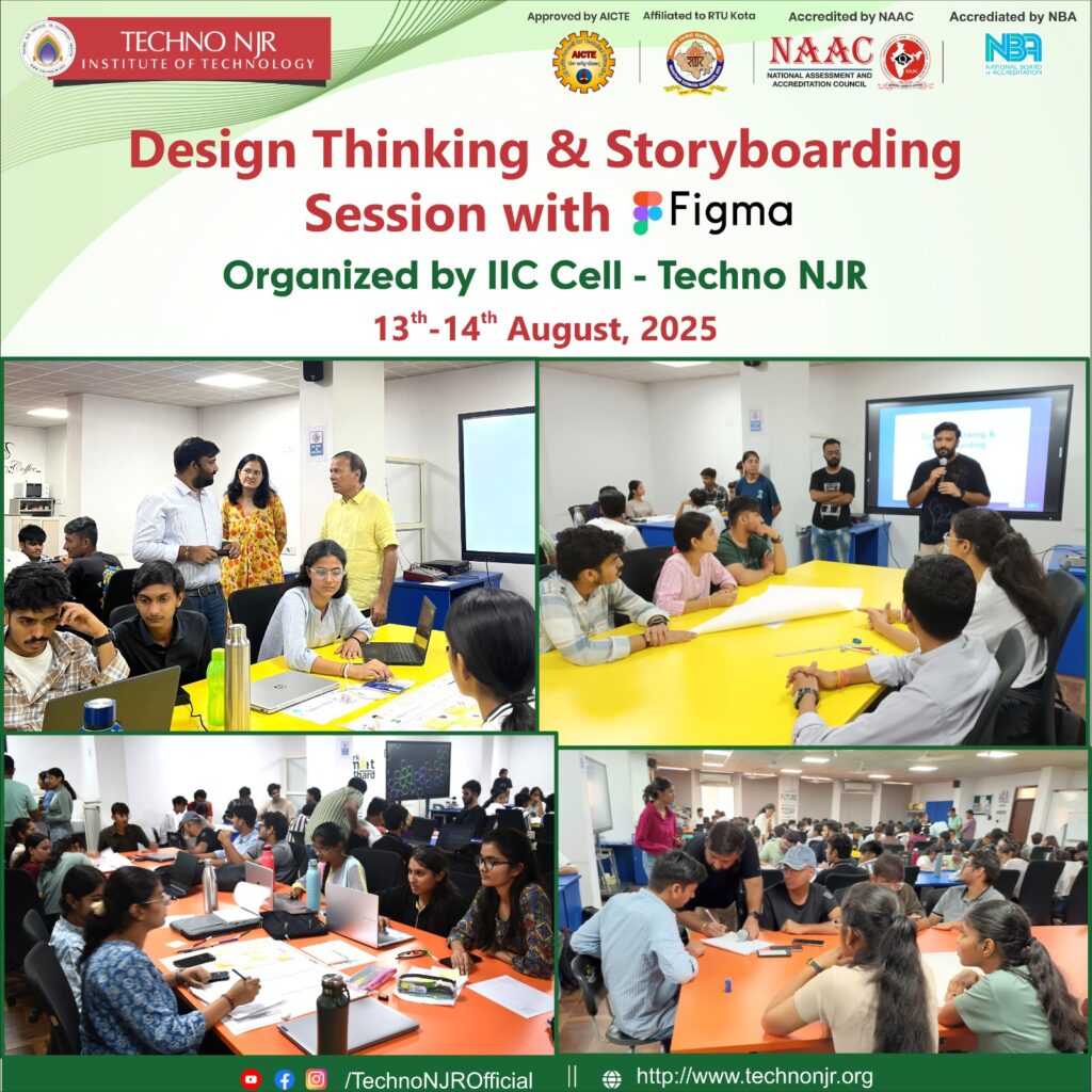 The Institution’s Innovation Council (IIC) Cell of Techno NJR Institute of Technology successfully organized a two-day Design Thinking & Storyboarding Session with Figma on 13th–14th August 2025.
